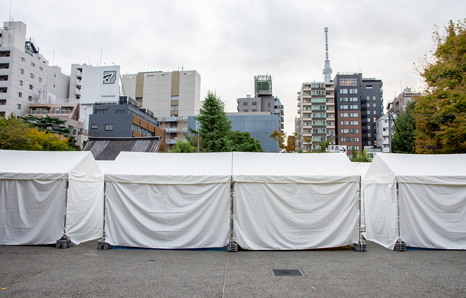 屋外テントは、屋外行事、販売、飲食スペース確保など、イベントを快適にする重要なアイテムとして多様に活用され、臨機応変な配置変更が可能です。