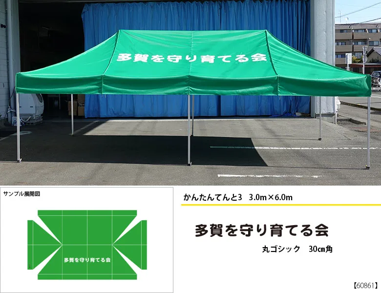 事例:1969 かんたんてんと3 3.0m×6.0m 名入れロゴ入れ展開図