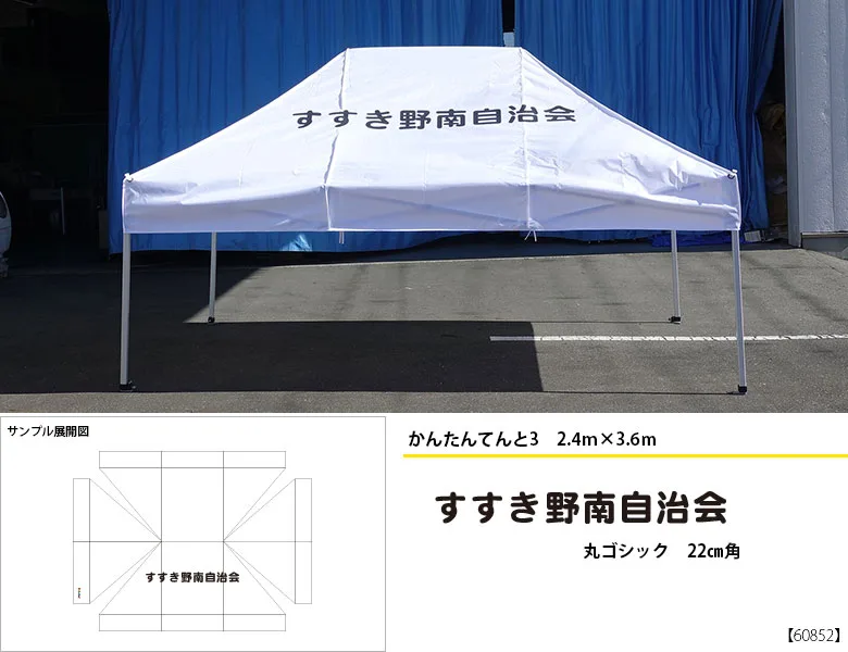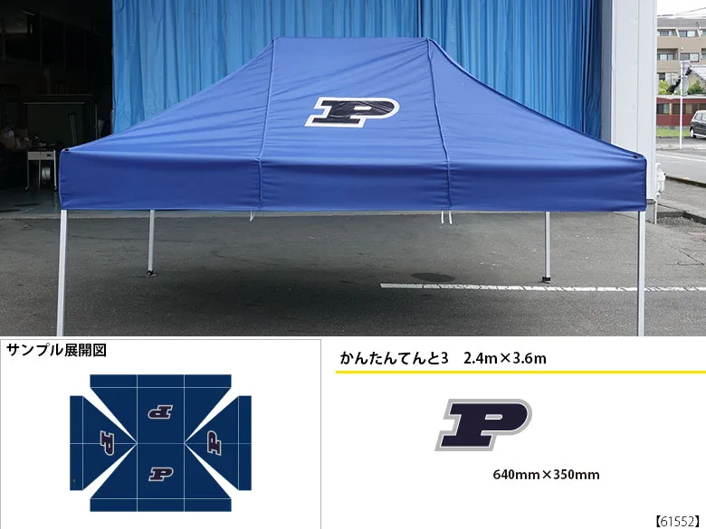 事例:1970 かんたんてんと3 2.4m×3.6m 名入れロゴ入れ展開図