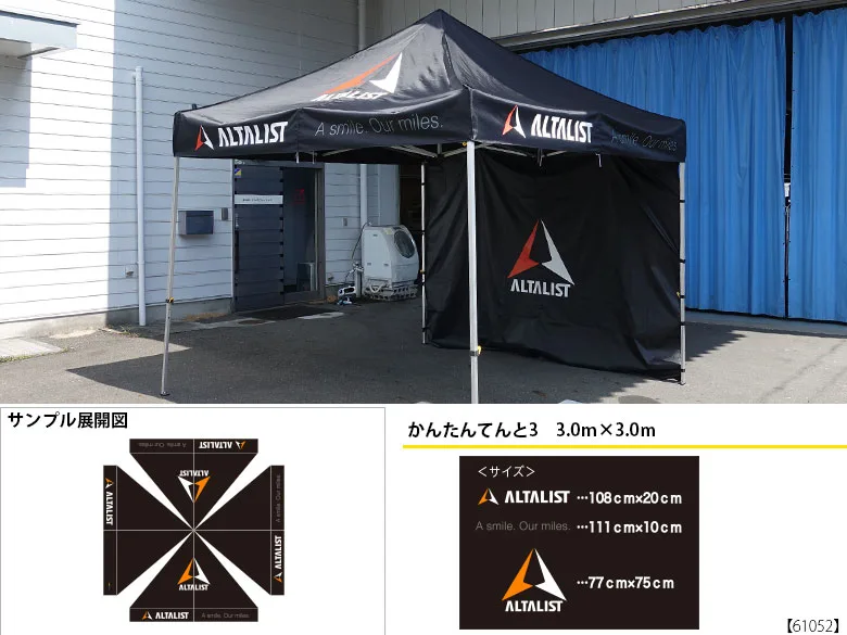 事例:1976 かんたんてんと3 3.0m×3.0m 名入れロゴ入れ展開図