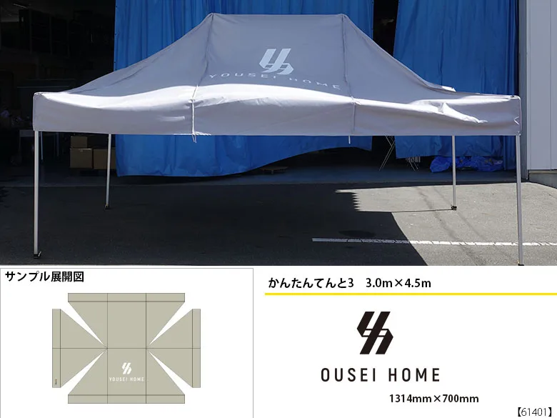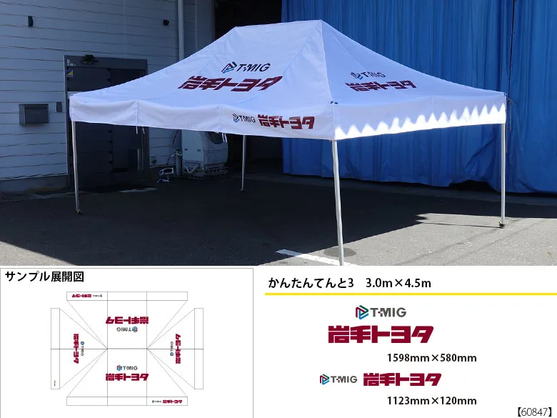 事例:1980 かんたんてんと3 3.0m×4.5m 名入れロゴ入れ展開図