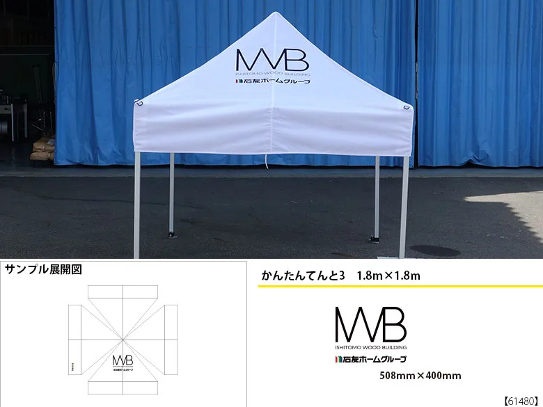 事例:1982 かんたんてんと3 1.8m×1.8m 名入れロゴ入れ展開図