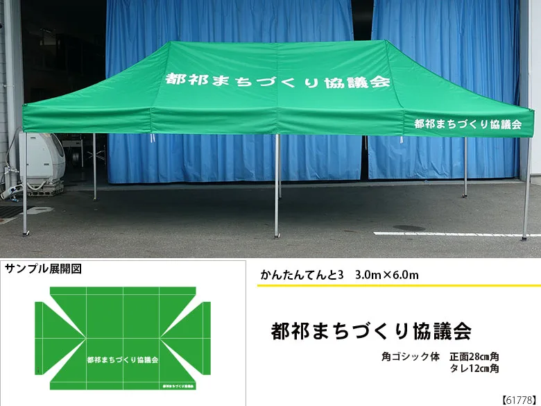 事例:1989 かんたんてんと3 3.0m×6.0m 名入れロゴ入れ展開図