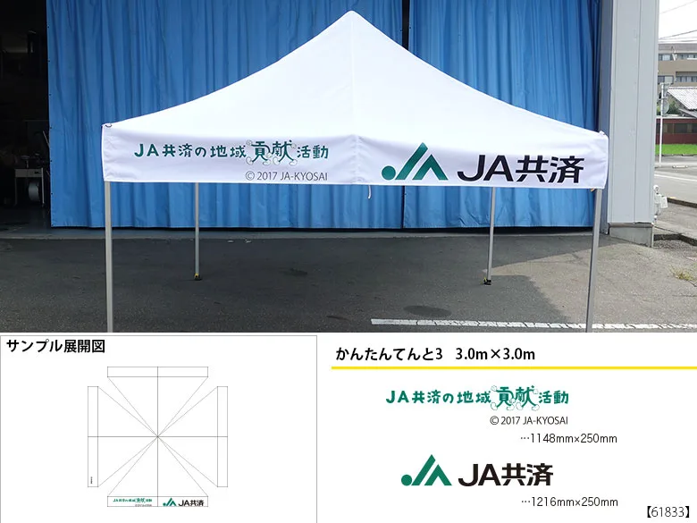 事例:2006 かんたんてんと3 3.0m×3.0m 名入れロゴ入れ展開図
