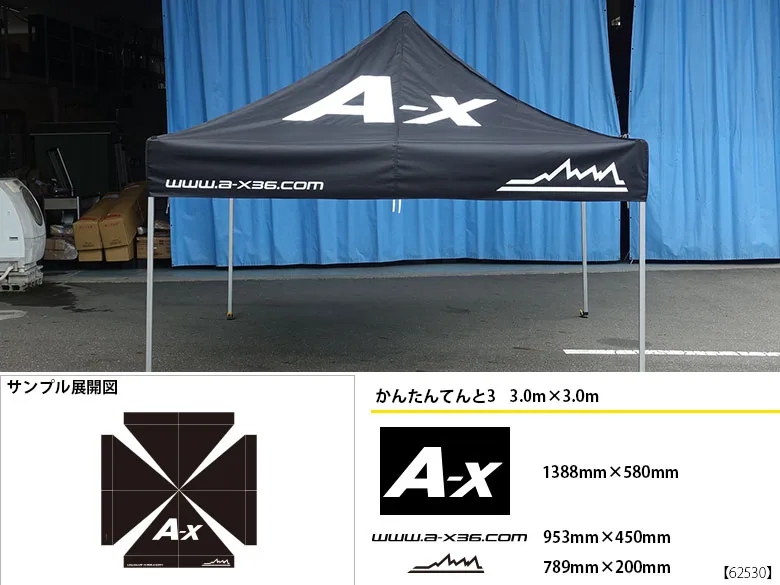 事例:2002 かんたんてんと3 3.0m×3.0m 名入れロゴ入れ展開図
