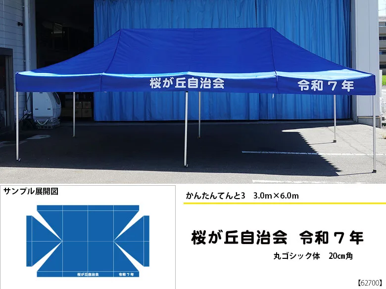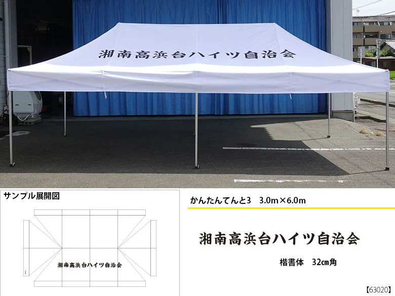 事例:2000 かんたんてんと3 3.0m×6.0m 名入れロゴ入れ展開図