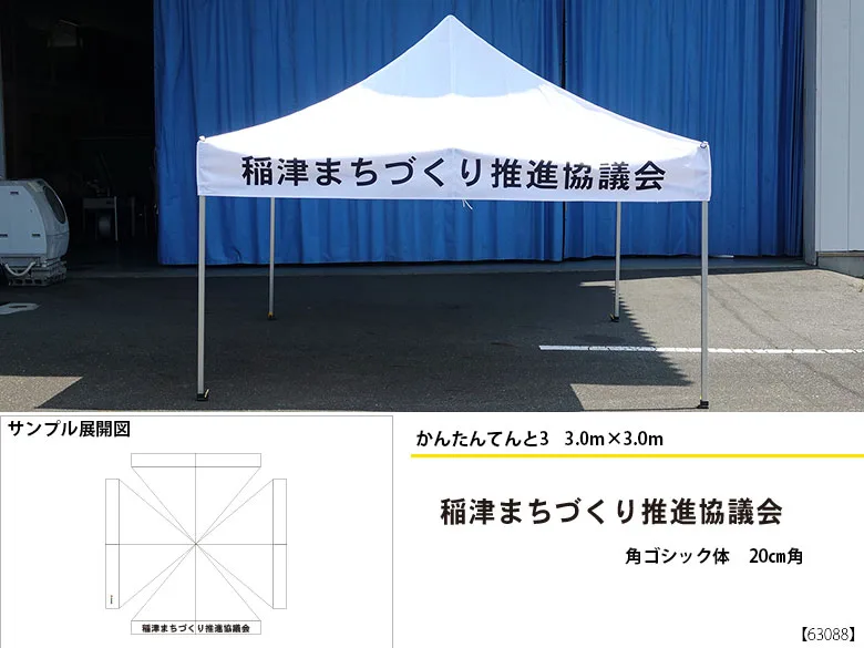 事例:1988 かんたんてんと3 3.0m×6.0m 名入れロゴ入れ展開図